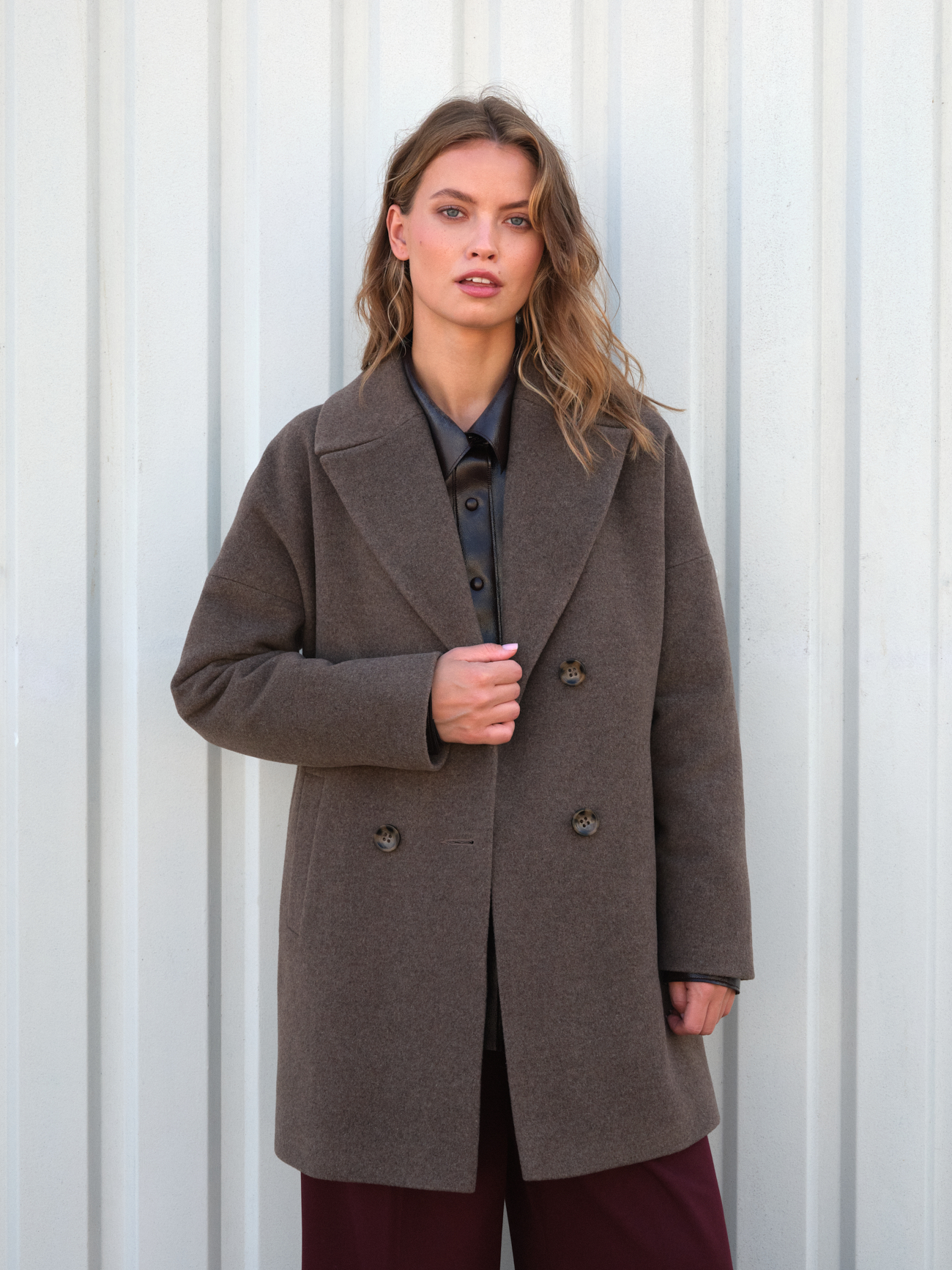 Mantel kurtka pudełkowa do połowy uda Roma sprawi, że poczujesze się modnie i wygodnie. Płaszcz w odcieniu kamiennym – z pogranicza brązu i szarości – to ponadczasowy wybór dla miłośników stonowanej elegancji. Jego klassisch, ale jednocześnie nowoczeny kolor – doskonale komponuje się zarówno z jasnymi, jak i ciemnymi elementami garderoby, tworząc spójną całość. W tym płaszczyku dobry wygląd, robi się sam! Dżinsy, sukienka czy legginsy – we wszystkim będziesz wyglądać przepięknie. Idealnie prezentuje się z różnymi dodatkami – gruby wełniany szal, pikowna shopperka czy skórzany pasek. Paski to absolutny hit tego sezonu – szczególnie w połączeniu z oversize’em. Choć ja preferuję go bez paska – prosto, minimalistycznie, surowo.
