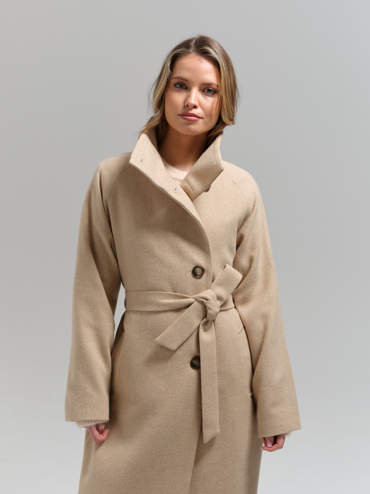 What size to choose and how to measure yourself are suggested in our short guide: How to choose a size? If you are unsure of your size selection, please contact us. Długi wełniany płaszcz w beżowym diagonalu ze stójką Lima to swobodny płaszcz o miękkiej formie, który subtelnie otula i podkreśla sylwetkę. Idealny dla Pań o szerszych ramionach lub z obfitym biustem. Wskazówki jaki wybrać fason płaszcza, umieściliśmy w zakładce: How do you choose a coat to suit your figure? Doskonała harmonia objętości i proporcji. Jeśli jednak preferowany jest bardziej dopasowany płaszcz, sugerujemy wybór mniejszego rozmiaru.