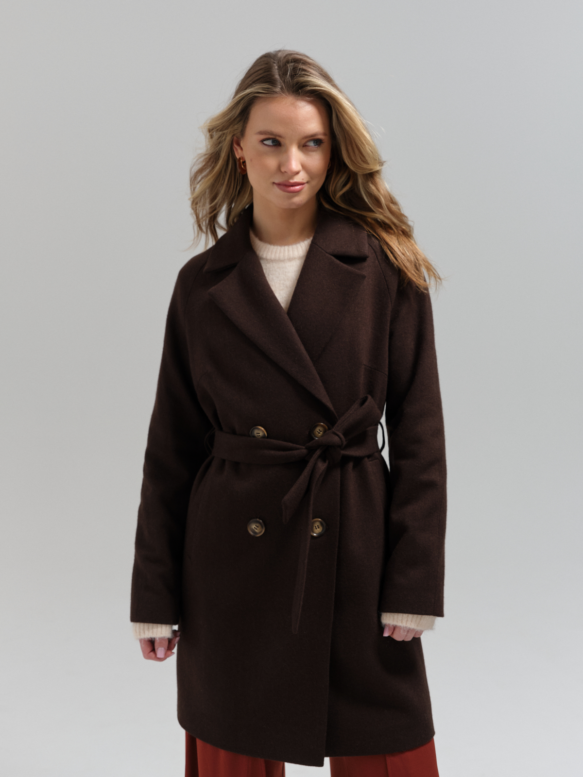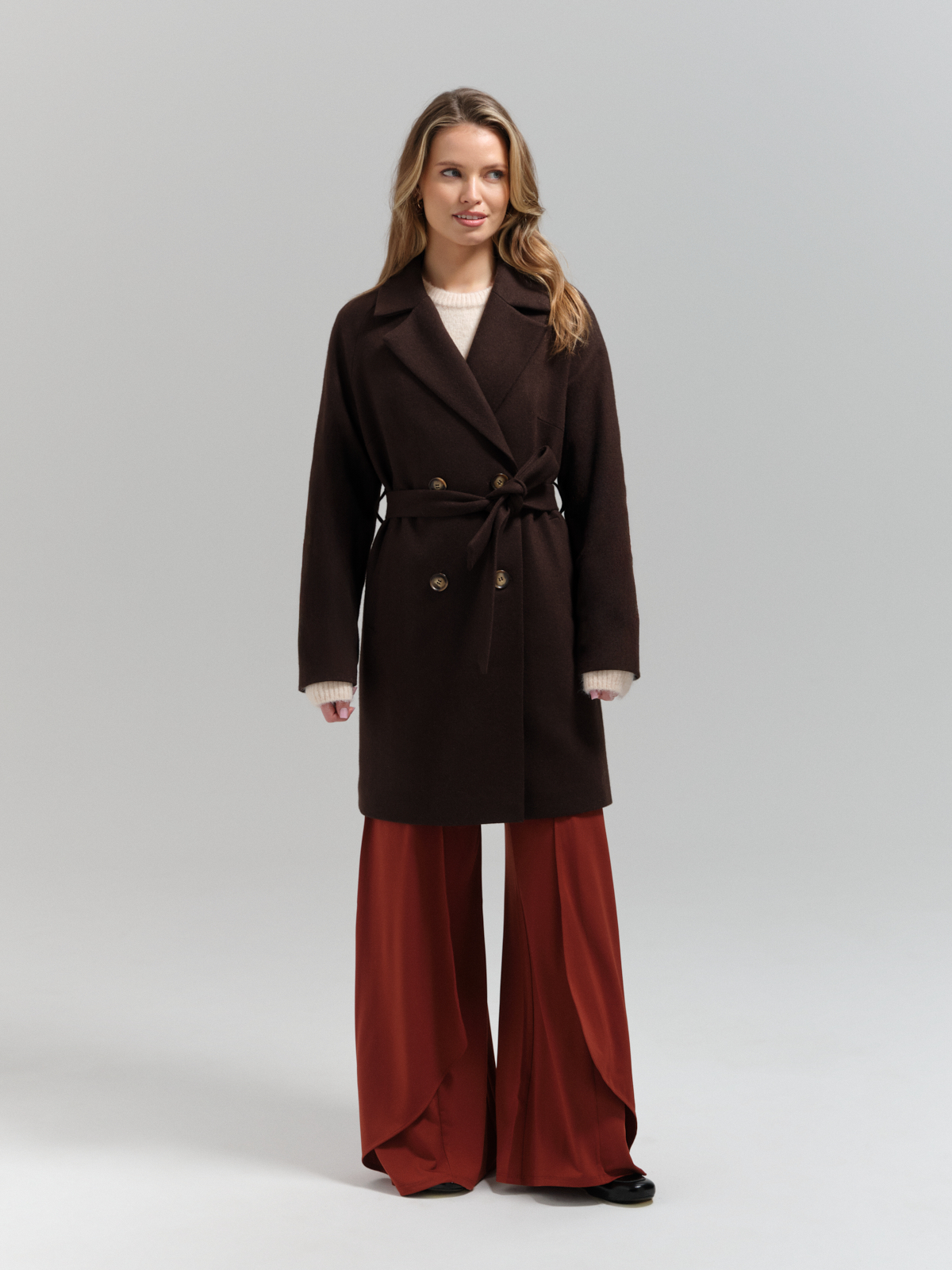 Czekoladowy wełniany płaszczyk do połowy uda Soho