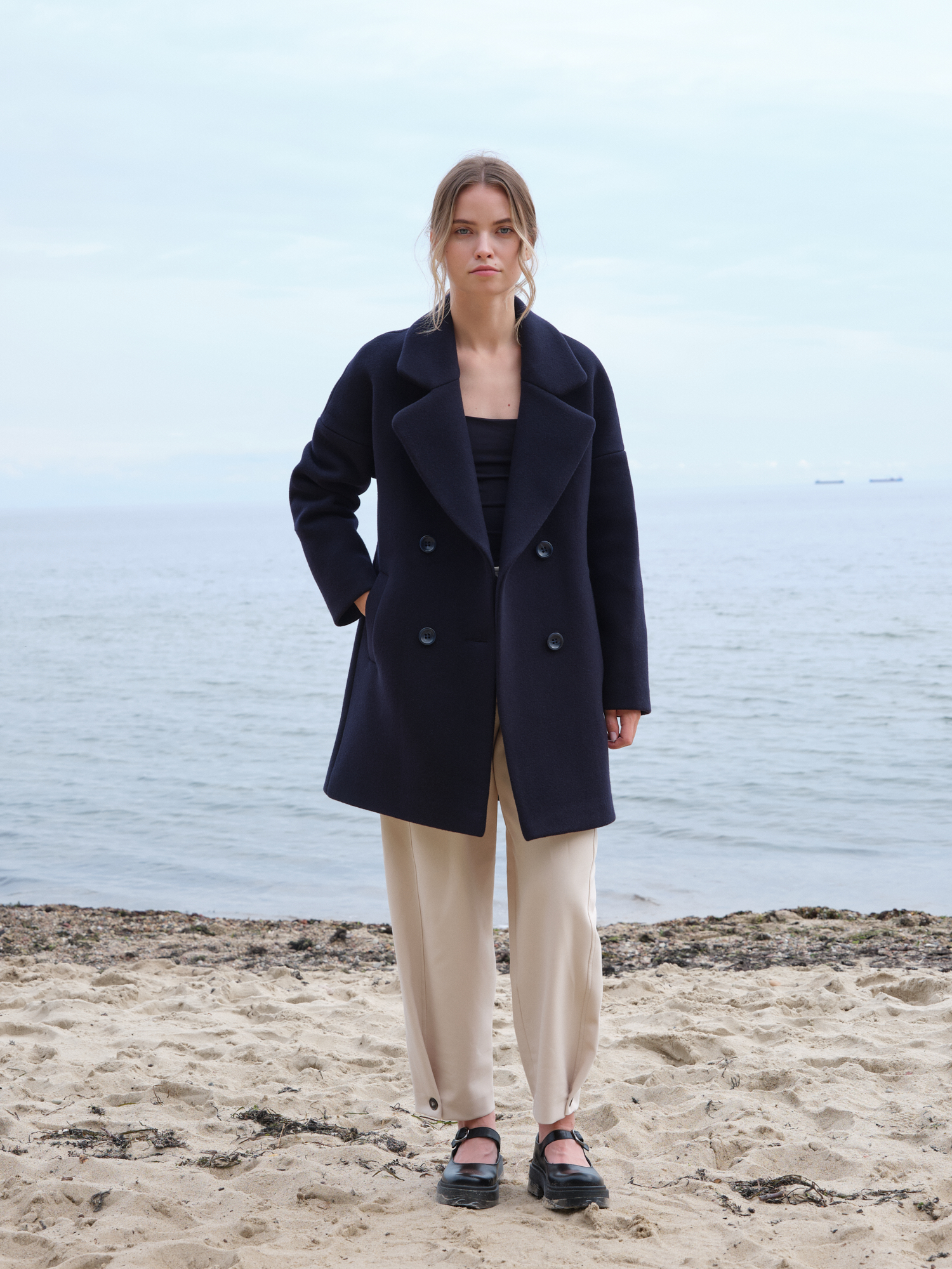 Wszystkie wymienione elementy tworzą spójny styl peacoat. To prosty fason, w którym wszystko jest dobrze przemyślane.