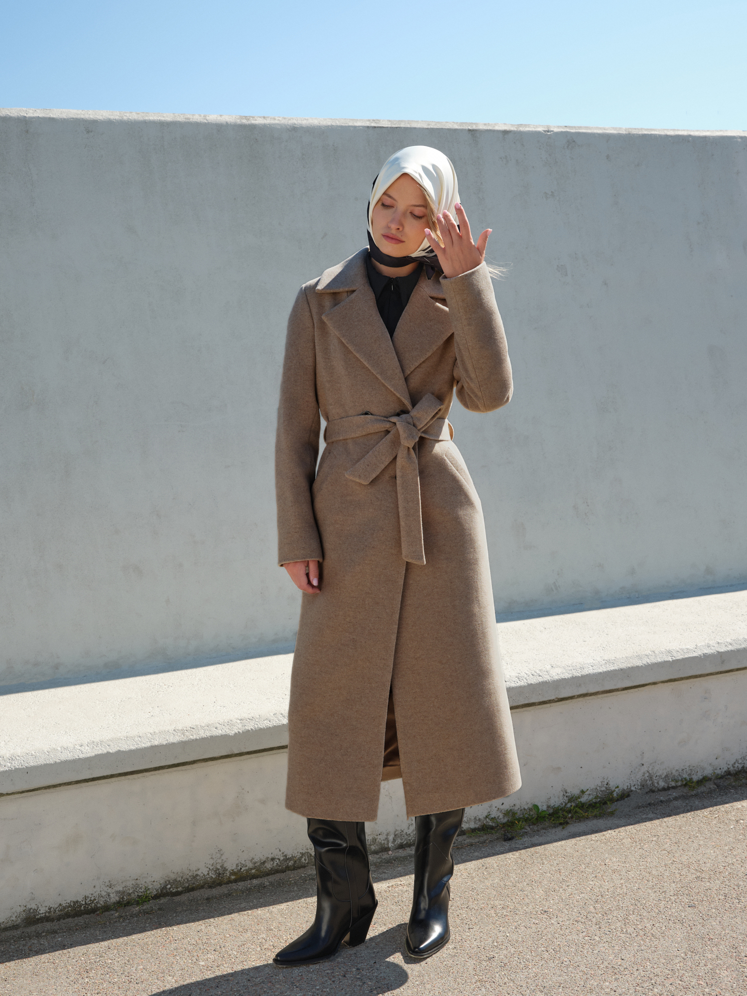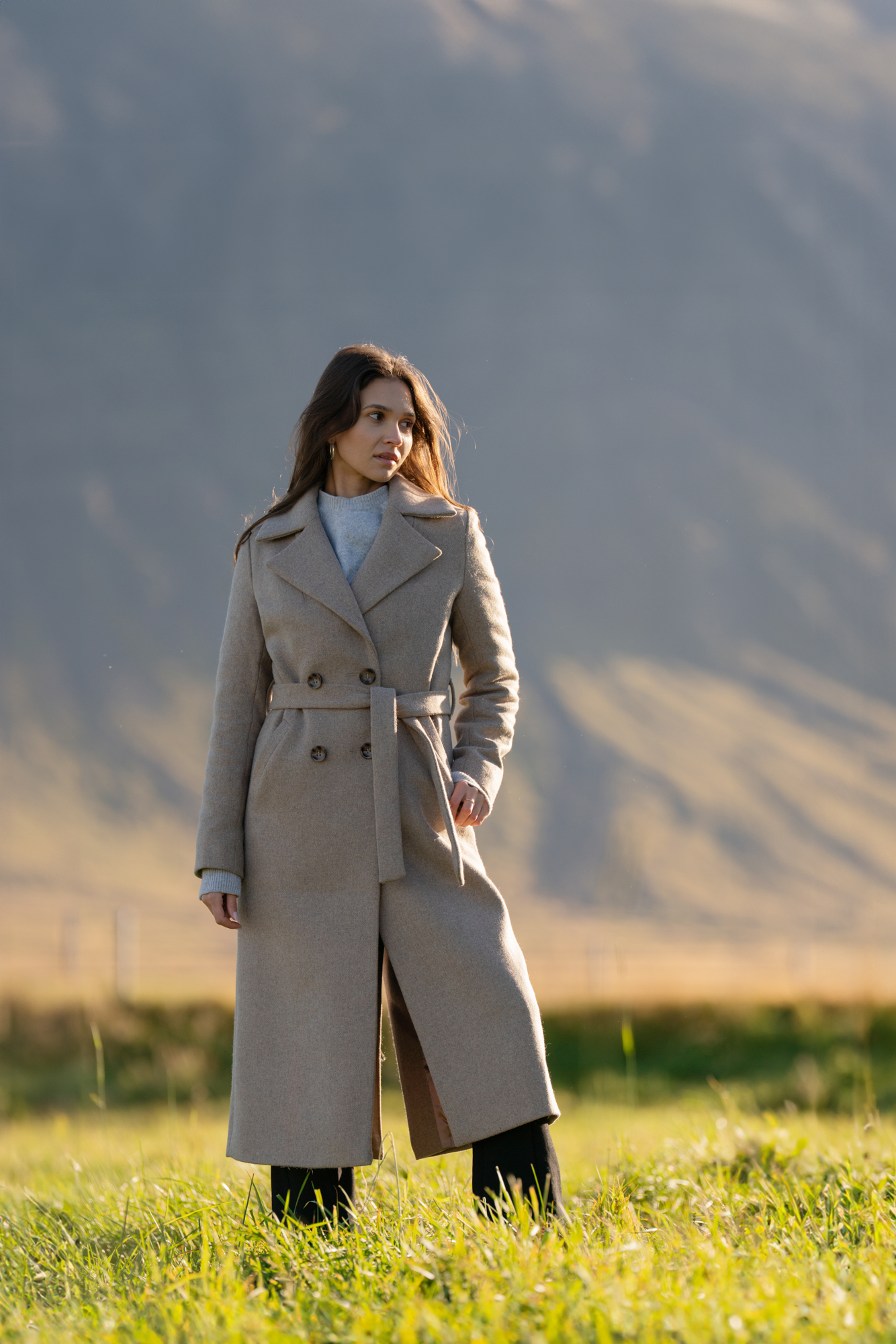 Długi wełniany płaszcz z rozporkiem mokka Como to zimowy płaszcz inspirowany stylem hygge – ciepłem, komfortem i prostotą. Uszyty z wysokiej jakości materiałów, miękki w dotyku, wygodny i maksymalnie funkcjonalny. Płaszcz jest zapinany na guziki i wiązany paskiem wykonanym z tej samej tkaniny. Co pozwala zbudować talię i lepiej dopasować fason do sylwetki. Wykładany kołnierz z klapami typu rewers, optycznie wysmuklający sylwetkę. Zaprojektowany tak, by podkreślał dekolt i wyszczuplał, a podniesiony – otulał i chronił przed chłodem. Tył płaszcza jest idealnie dopasowany do sylwetki, taliowany. Przód profilowany, bez dodatkowych zaszewek, co daje wygodę nawet przy cieplejszych warstwach. Płaszcz pomieści, modne w tym sezonie dzianinowe sukienki i wełniane kamizelki. Po bokach wszyte praktyczne kieszenie. Z tyłu, na dole znajduje się rozporek, który dodaje swobody ruchów. Całość wykończona jest elegancką, acetatową podszewką i dodatkowym ociepleniem – dzięki czemu Como sprawdzi się doskonale w chłodne dni.