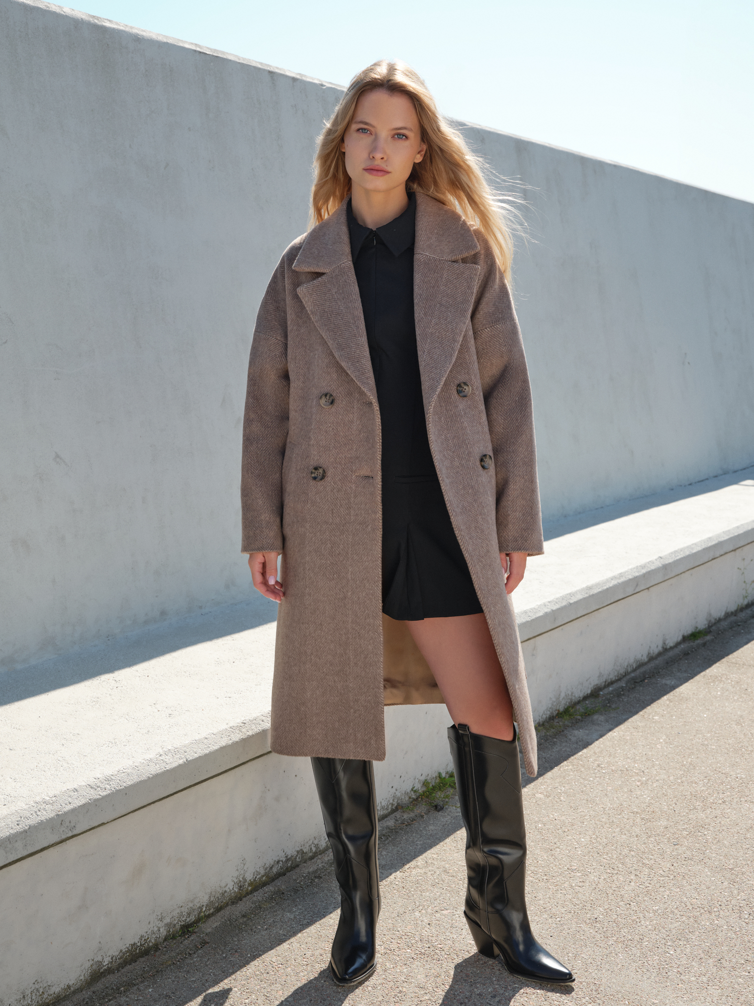 Oversizowy płaszcz zimowy w brązową jodełkę Milano to dość swobodny dwurzędowy płaszcz z opadającymi ramionami i luźnym dopasowaniem, które nadają stylizacji nonszalancji i stylowego luzu. To idealny płaszcz dla tych, którzy cenią wygodę, ale nie chcą rezygnować z elegancji. Płaszcz ma celowo obniżoną linię ramion, by stworzyć przestrzeń na stylizacje wielowarstwowe i nadać całości miękkiego i zrelaksowanego wyglądu. Płaszcz Milano jest delikatnie luźniejszy i większy, szczególnie w górnych partiach. Idealny dla osób z większym biustem. Jeśli jednak wolisz bardziej dopasowany płaszczyk – polecamy wybór mniejszego rozmiaru. Najważniejsze w tym fasonie, by zbyt mocno nie opinał się na biodrach.