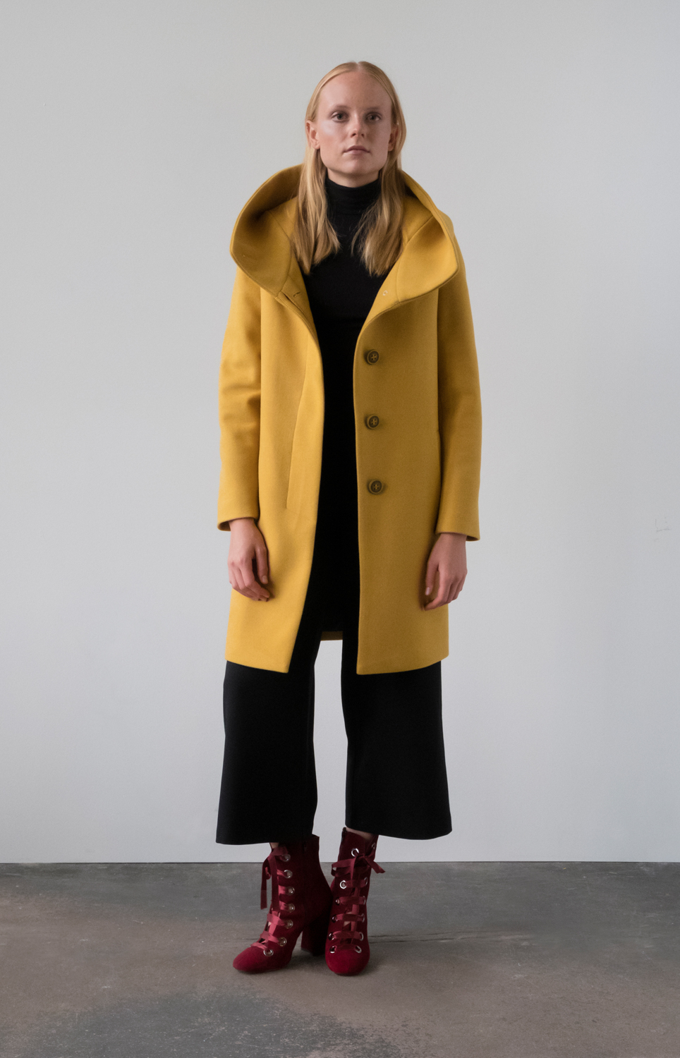 Płaszcz damski z kapturem wełniany Michalina bez problemu możesz wykorzystać na spacer w zimne dni i ubrać do niego luźny strój wraz z obuwiem sportowym bądź traperami. Jeśli zapomnisz szala i czapki – to nic nie szkodzi! Ten model zapewni Ci ochronę głowy przed zimnem a wysokie podpięcie tworzące stójkę i otulające szyję zastąpi szal. Oczywiście to nie jest jedyna możliwość stylizacji. Michalina równie dobrze prezentuje się z eleganckimi spodniami i butami na obcasie, oprócz elegancji zapewniając komfort i wygodę. Dodatkowo model ten jest ponadczasowy i będzie towarzyszył Ci latami.