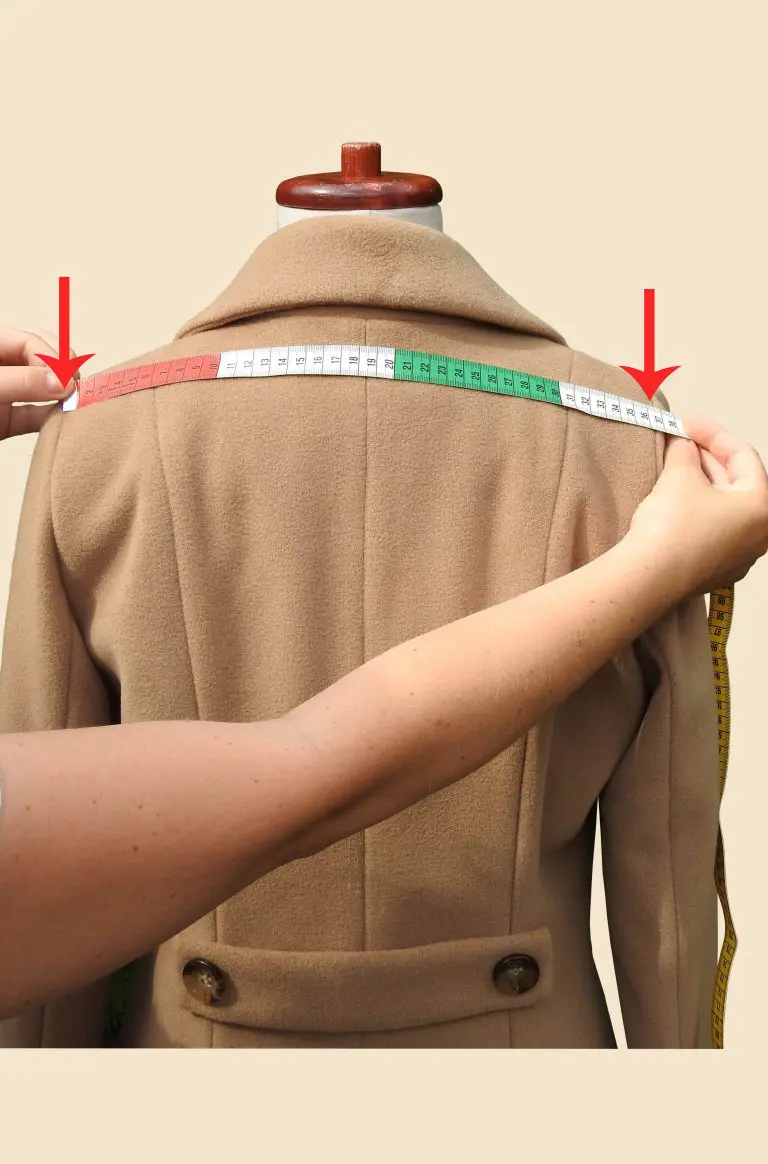 SZEROKOŚĆ RAMION jest mierzona po linii pleców od miejsca wszycia jednego rękawa do miejsca wszycia drugiego rękawa (w przypadku klasycznie wszywanego rękawa).