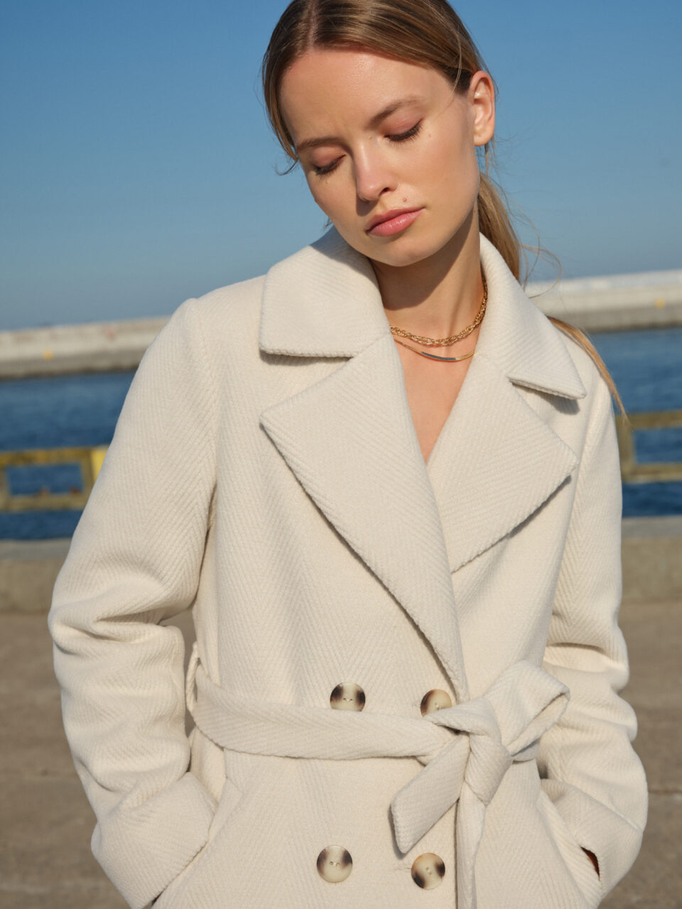 Beżowy płaszcz przejściowy z wełny i kaszmiru Ada