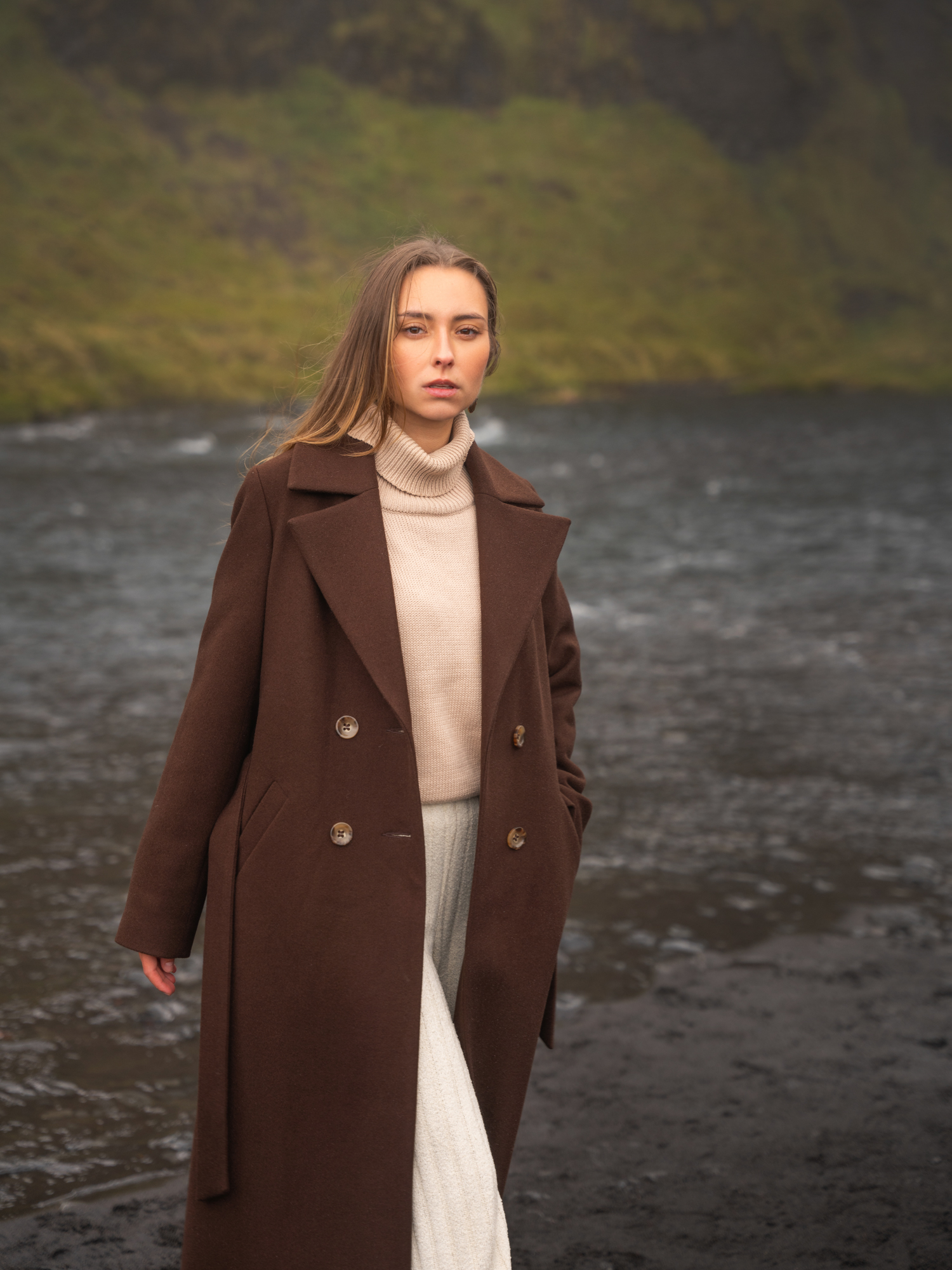 Płaszcz ma bardzo nowoczesną i dopracowaną konstrukcję, która jednocześnie zapewnia wygodę i komfort noszenia, jak i dodaje klasy oraz odrobiny luksusu nawet najprostszym stylizacjom. Pasek świetnie zbuduje talię a podniesiony kołnierz ochroni przed wiatrem, otuli i ogrzeje. Doskonała propozycja na zimę. Odkryj nasz czekoladowy długi płaszcz zimowy Atena i zachwyć się jakością wykonania, ciepłem i miękkością. Edycja limitowana.