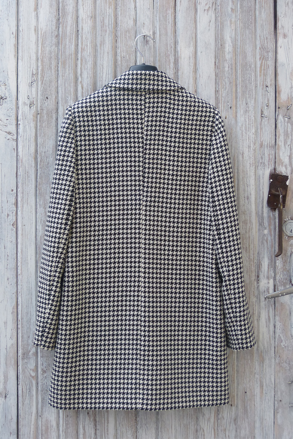 Płaszczyk marynarka w pepitkę Vicky została zaprojektowana i uszyta w naszej pracowni. Ręczny proces tworzenia tego płaszczyka zaczyna się od układania materiału, tak by powstał jak najmniejszy odpad. Następnie wykrojone części są ze sobą zszywane i na koniec płaszczyk wykańczany jest ręcznie przyszywanymi guzikami. To rzemieślnicza perełka w którą włożyliśmy całe nasze serce.